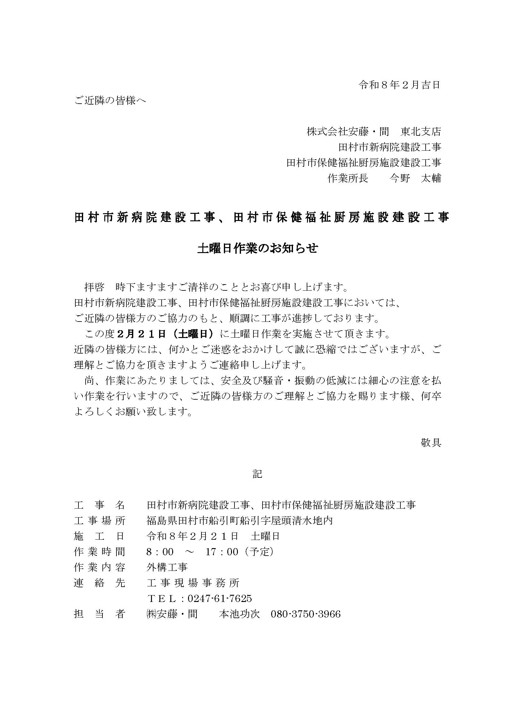 2025年2月 工事予定のお知らせ